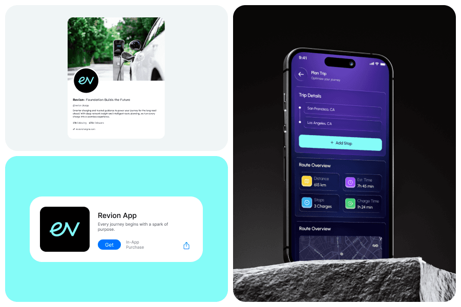REVION is a modern EV charging platform designed to simplify how users locate, access, and manage electric vehicle charging. The platform focuses on creating a seamless experience with clear navigation, real-time information, and an intuitive interface that supports the growing ecosystem of electric mobility.